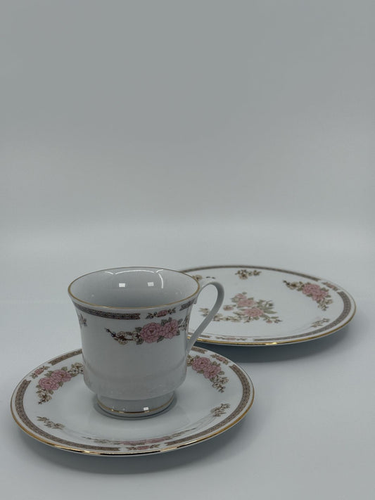 Crown Ming roosidega taldrikute ja tasside komplekt