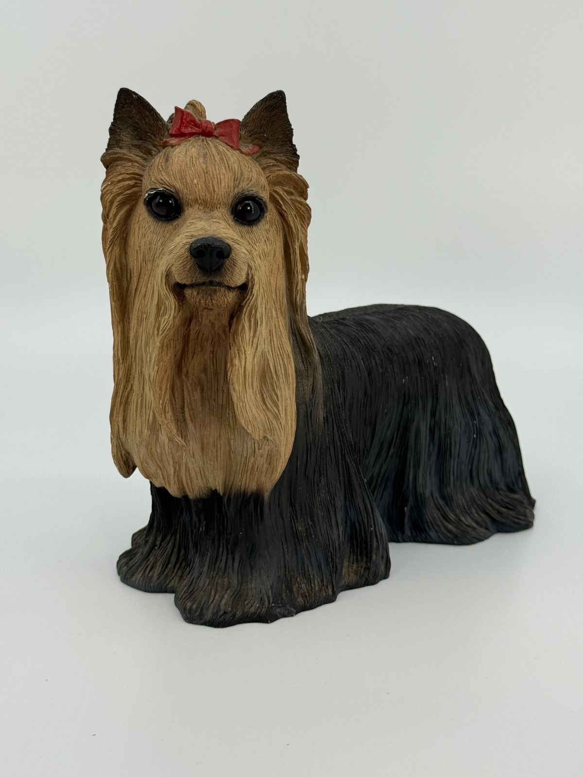 Armas ja detailne Yorkshire terjeri dekoratiivkuju. Kaunis realistliku karvaplastikaga ning punase lipsuga, mis lisab kujule iseloomu. Sobib suurepäraselt kodukaunistuseks, kingituseks koerasõbrale või riiulile.