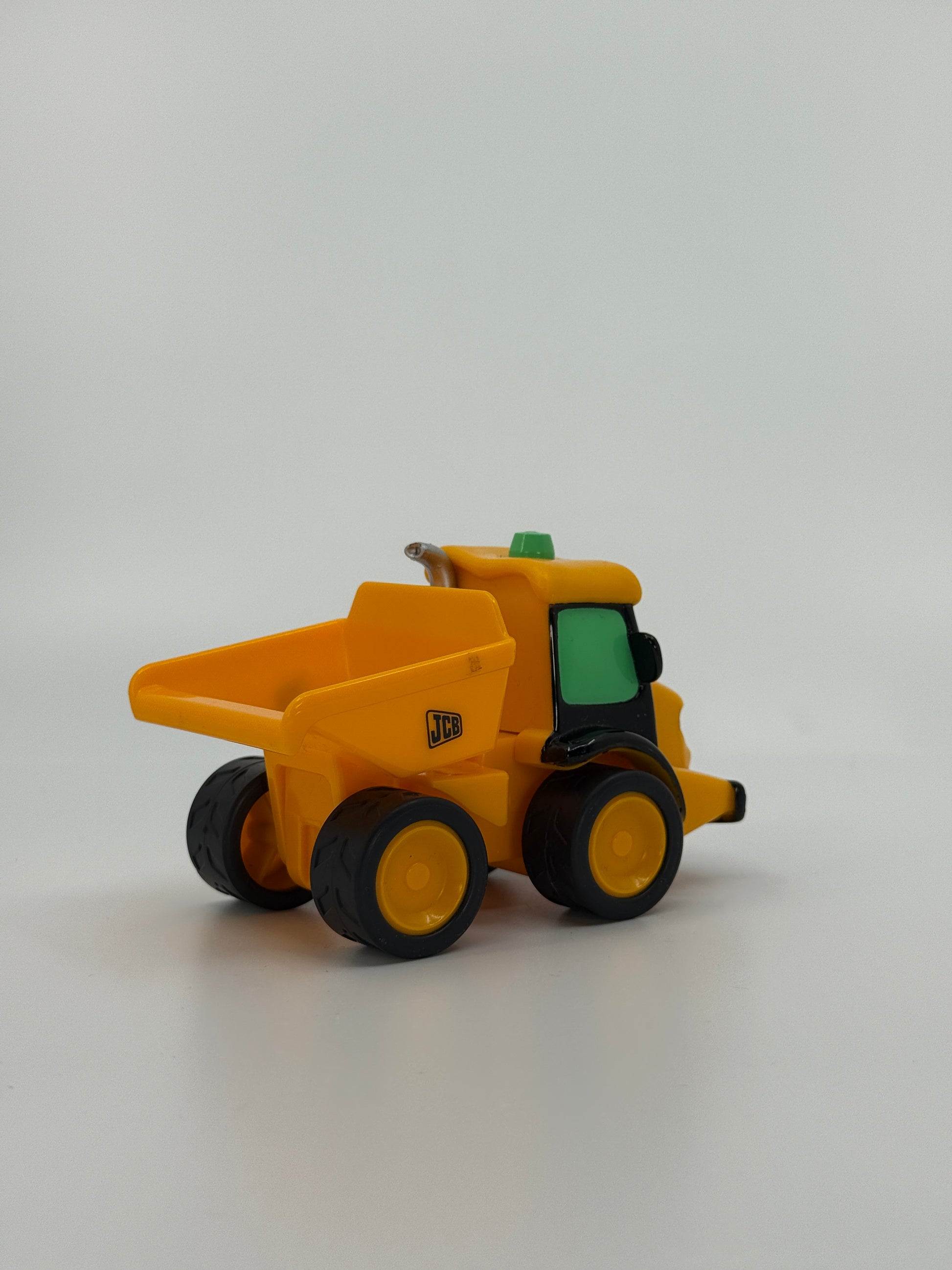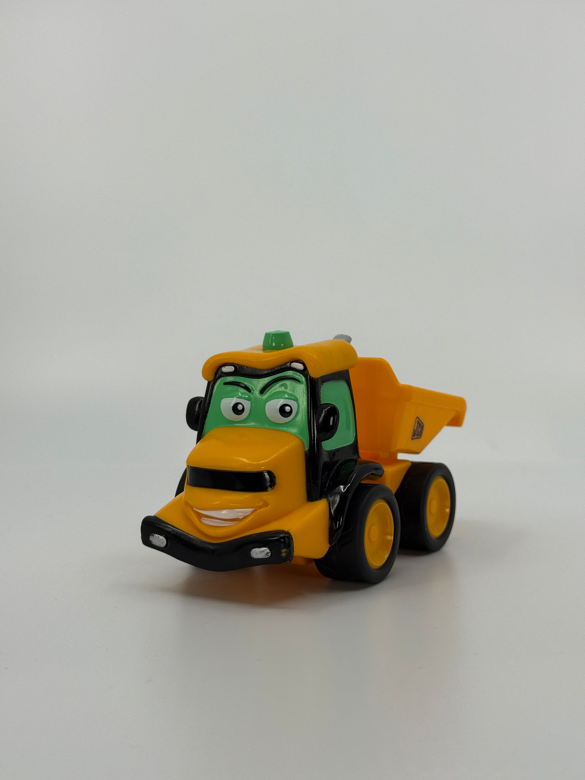 Lõbusa näoilmega kollane plastmassist mängukallur. Vastupidav ja hästi veerevate ratastega, sobib suurepäraselt väikestele ehitusmängude fännidele.