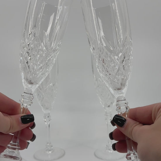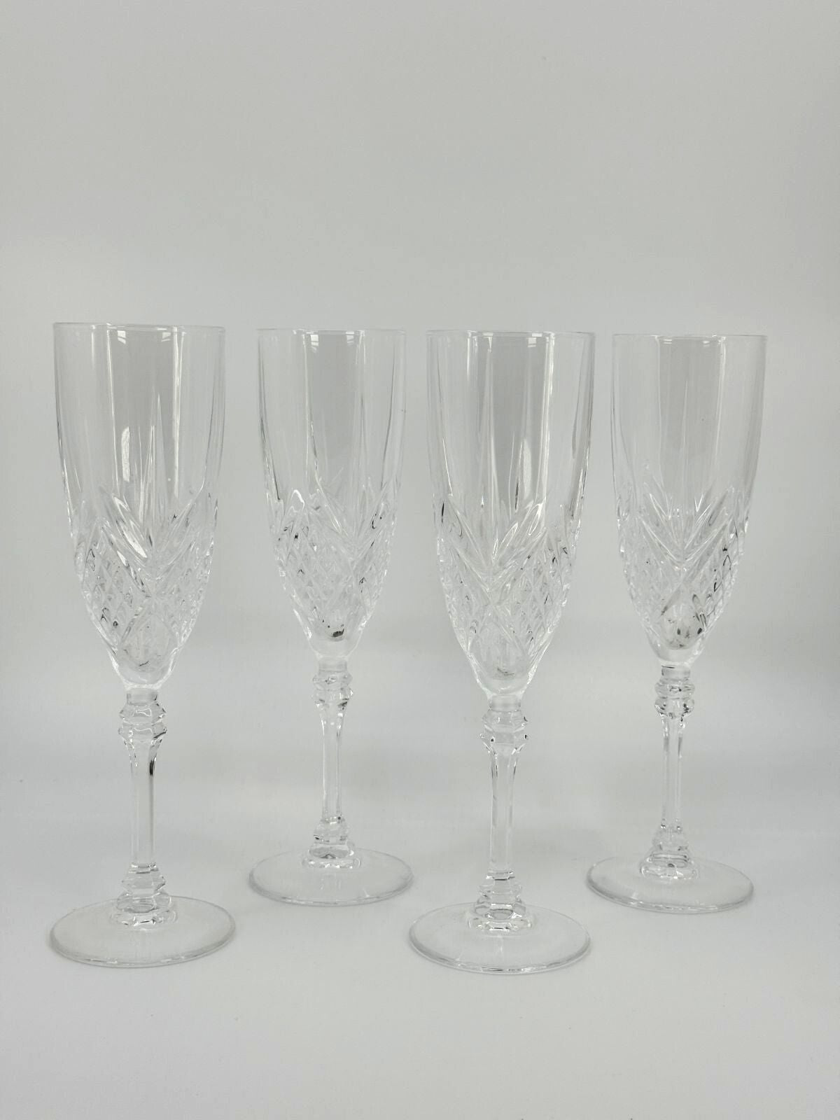 Elegantne nelja lihvitud klaasist šampanjapokaali komplekt, mis lisab igale pidulikule sündmusele klassi ja sära. Pokaalidel on kaunis detailne lihvitud muster, õhuke jalg ning selge klaas annavad pokaalidele õrna ja peene ilme.