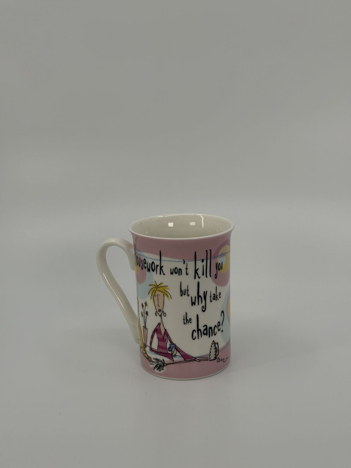 Lõbus Born to Shop sarja keraamiline kruus, millel on humoorikas illustratsioon ja tekst “Housework won’t kill you, but why take the chance?”. Kerge ja mugava kujuga kruus sobib suurepäraselt igapäevaseks kasutamiseks.