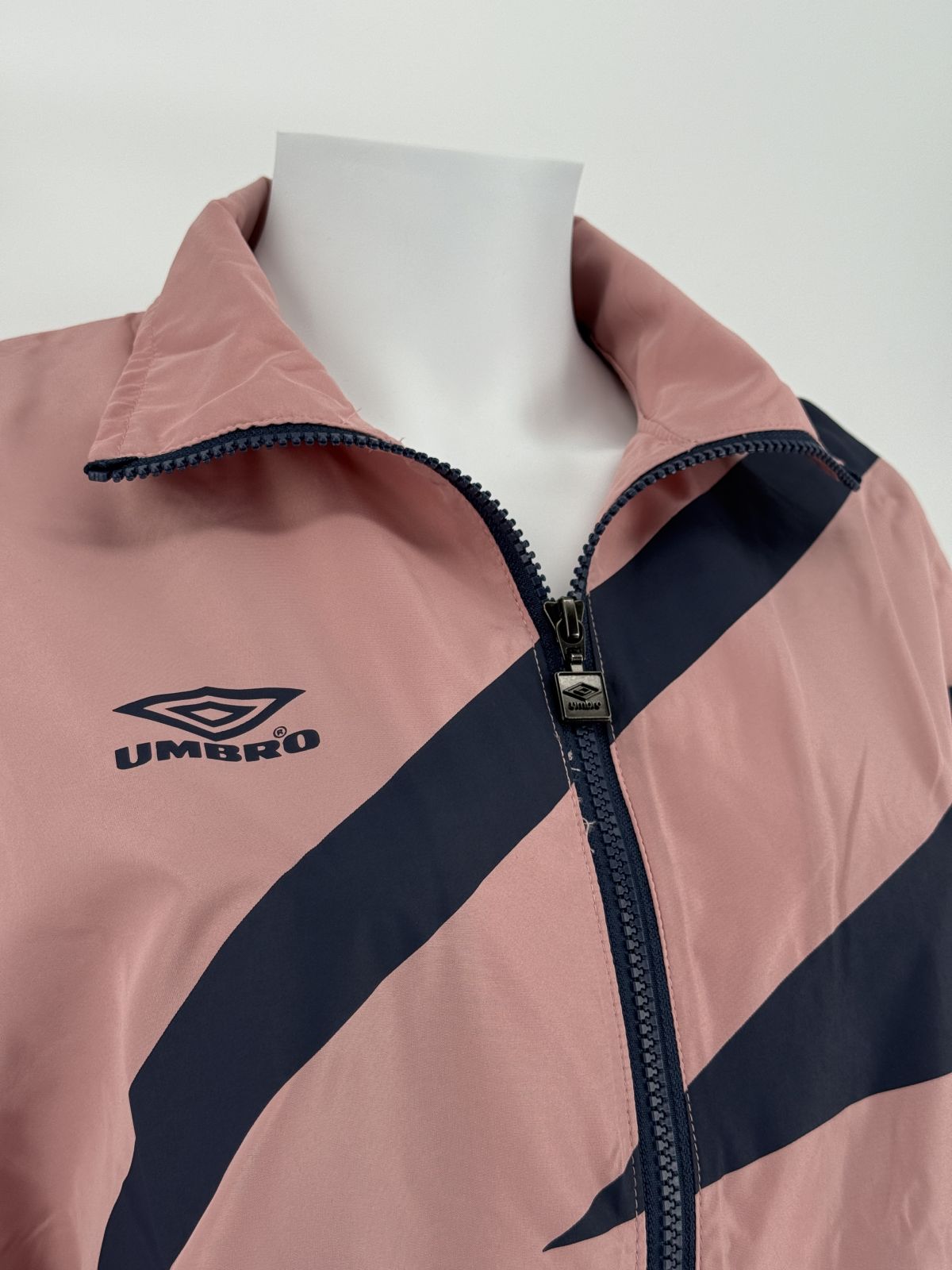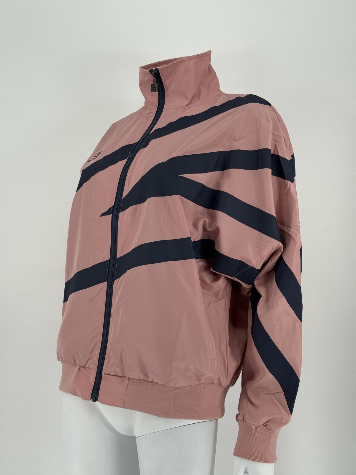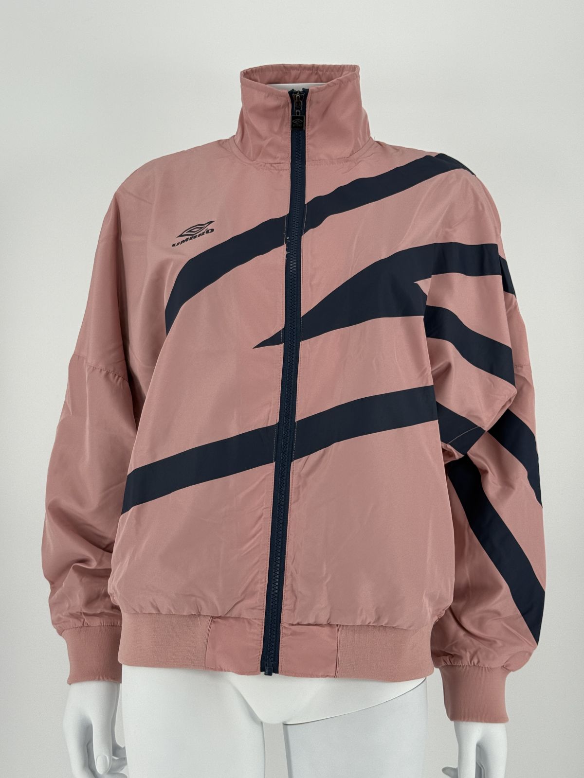Stiilne UMBRO roosakas tuulejakk tumesiniste diagonaalsete triipudega. Kerge ja mugav materjal sobib suurepäraselt igapäevaseks kandmiseks või sportlikeks tegevusteks. Jakil on kõrge krae, täispikk tõmblukk ja elastsed varrukaotsad, mis hoiavad tuult eemal. Klassikaline ja trendikas lõige, mis sobib paljude riietustega.