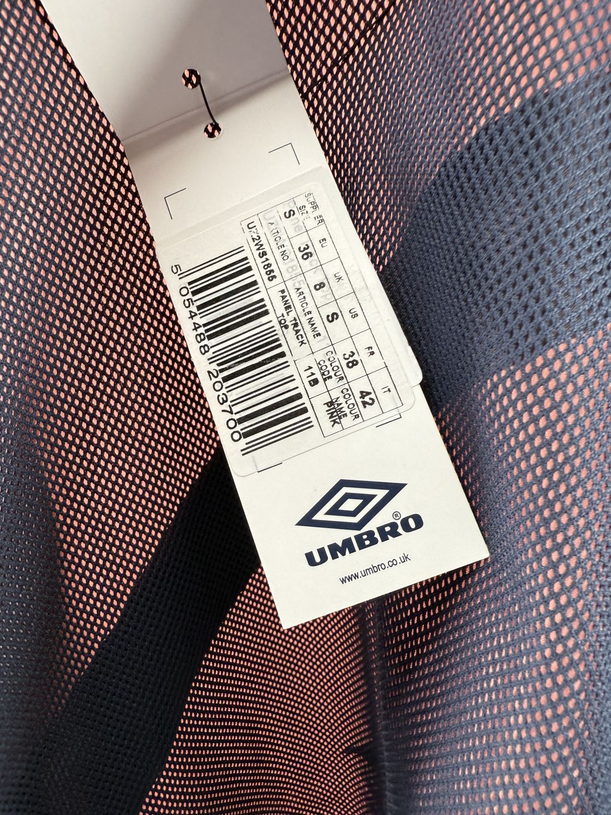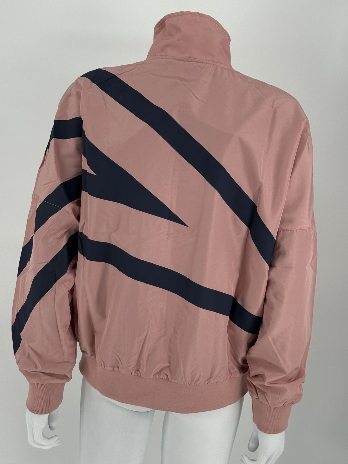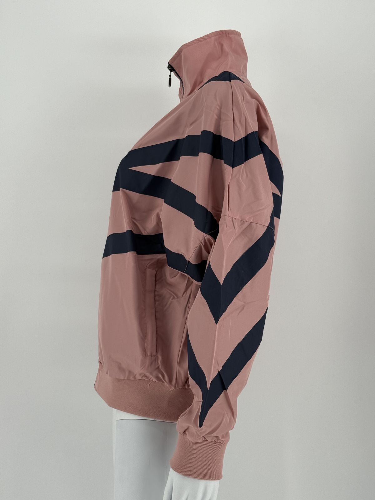 Stiilne UMBRO roosakas tuulejakk tumesiniste diagonaalsete triipudega. Kerge ja mugav materjal sobib suurepäraselt igapäevaseks kandmiseks või sportlikeks tegevusteks. Jakil on kõrge krae, täispikk tõmblukk ja elastsed varrukaotsad, mis hoiavad tuult eemal. Klassikaline ja trendikas lõige, mis sobib paljude riietustega.