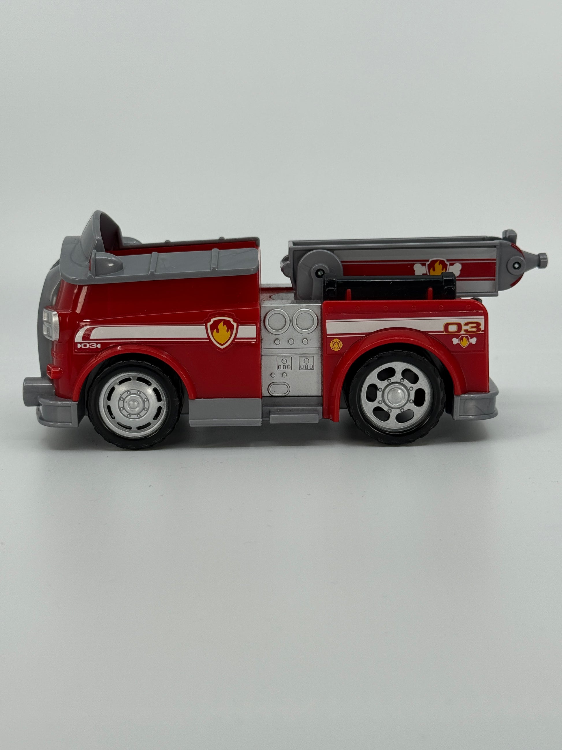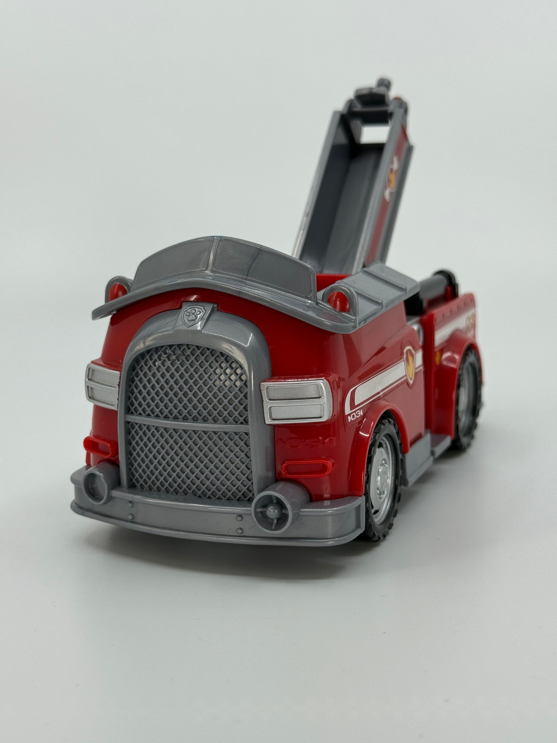 Punane ja hall tuletõrjeauto liikuva redeliga.