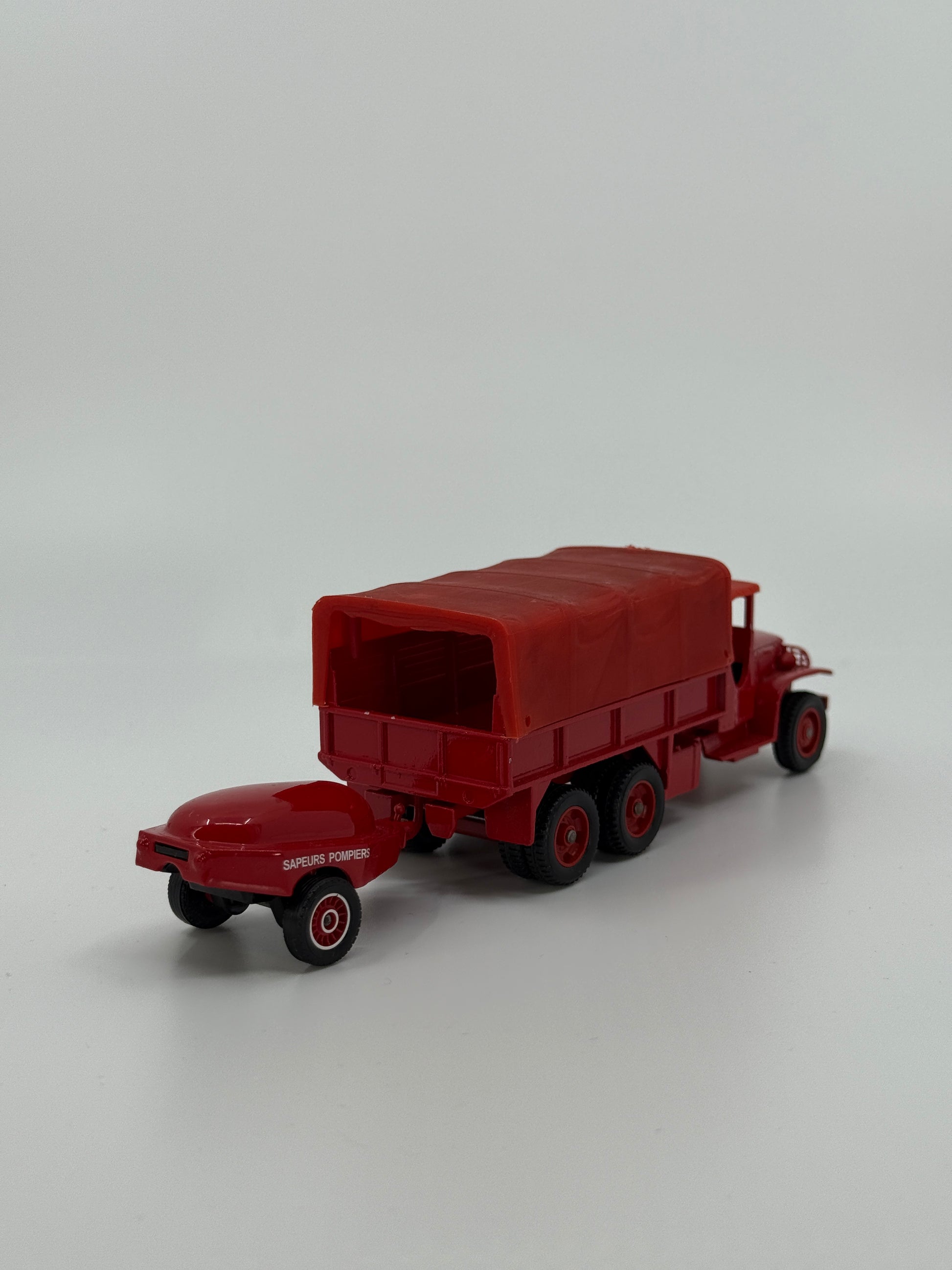 Punane tuletõrjeauto mudel haagisega “Sapeurs Pompiers”