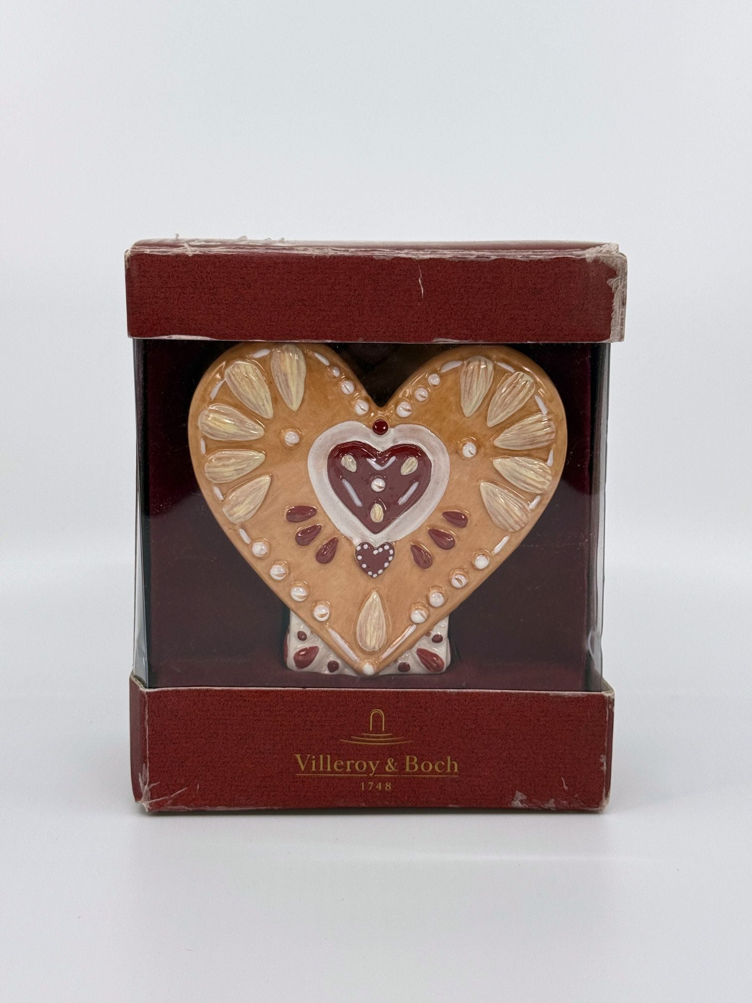 Elegantne Villeroy & Boch südamekujuline teeküünla alus, kaunistatud õrnade lille- ja südamemotiividega.