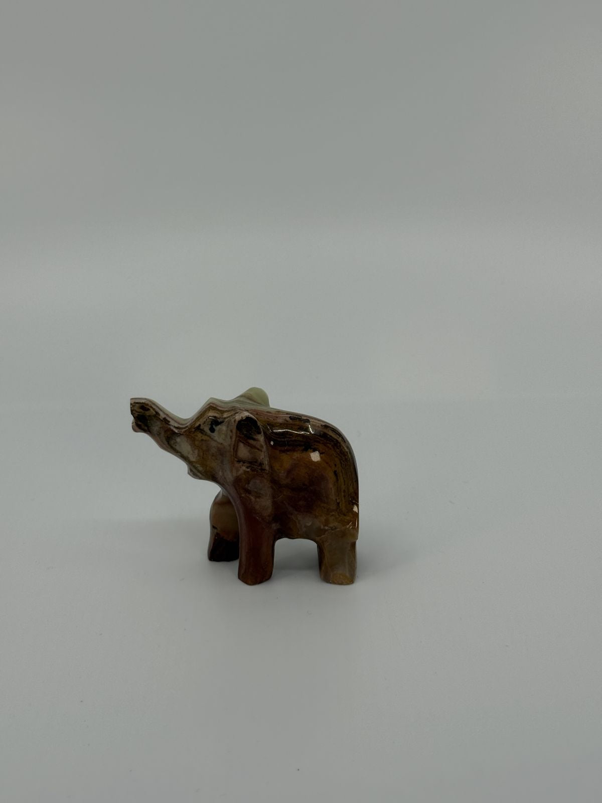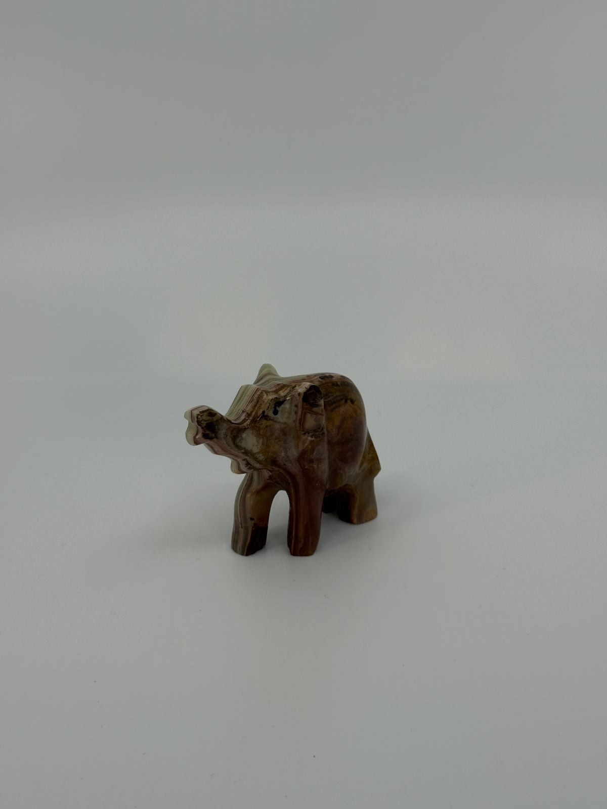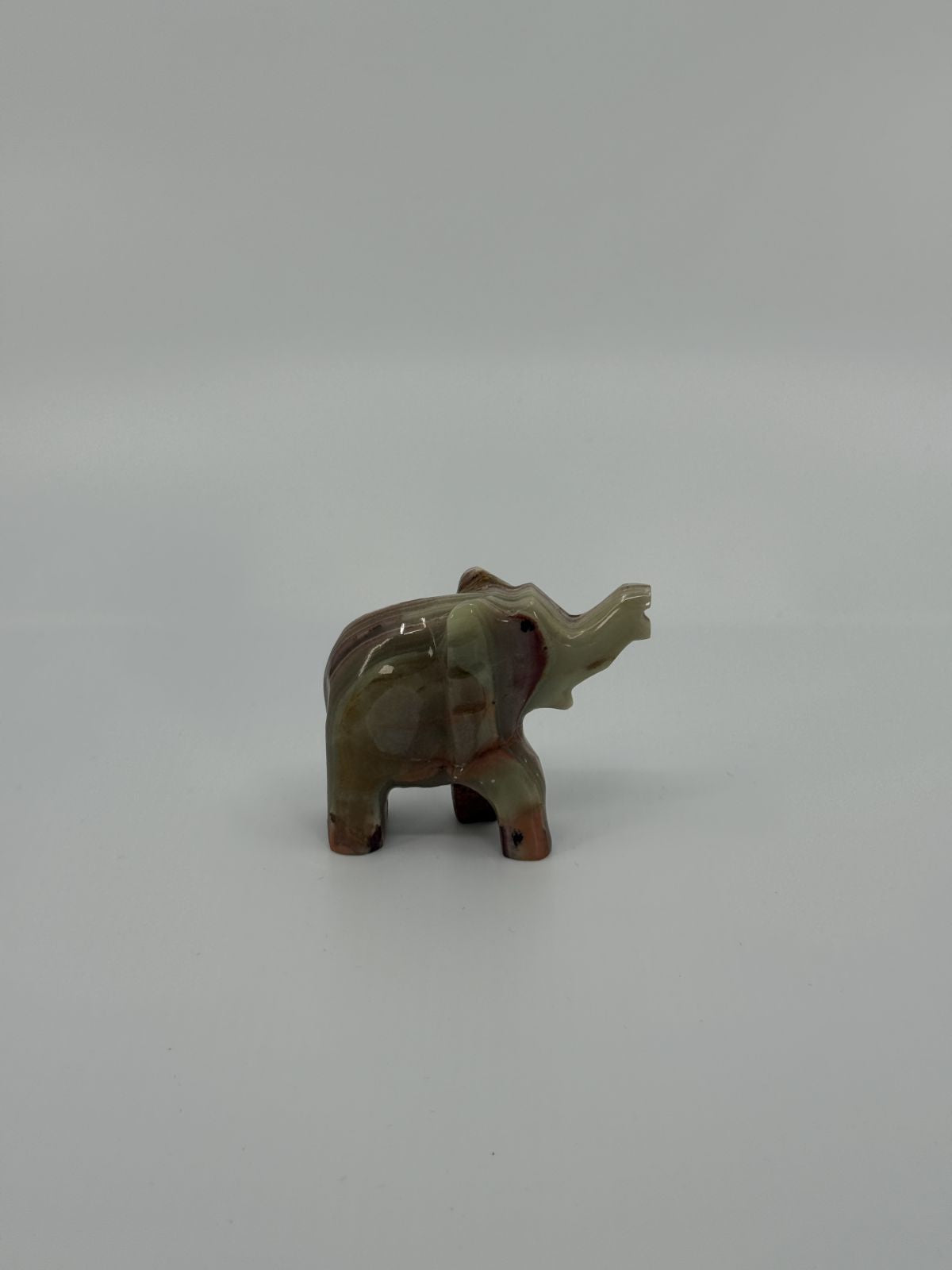 Pisike elevandikujuline dekoratsioon. Loomal on üles tõstetud lont, mida peetakse hea õnne sümboliks. Sobib riiulikaunistuseks, kingituseks või kogujale väikeste loomakuju­de juurde.